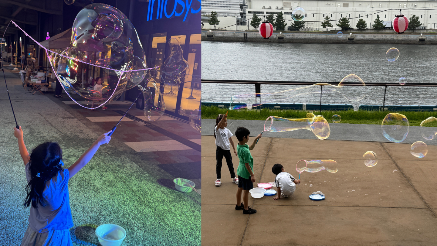- 『KOBE BUBBLUMI 2026』のバブルアート前でシャボン玉を楽しもう!シャボン玉アーティストが実際に使う機材を使って、大きなシャボン玉や大量のシャボン玉を誰でも簡単に飛ばすことができます。1杯500円で液がなくなるまでシャボン玉は飛ばし放題!夜はナイトバブルショーも開催予定。”きらめくバブルアート×シャボン玉”の特別な体験をお楽しみください! <シャボン玉アーティスト体験> 利用料:500円 / シャボン液1杯 ※繰り返し楽しみいただけます <ナイトバブルショー> 日没後(18:45頃)に実施予定