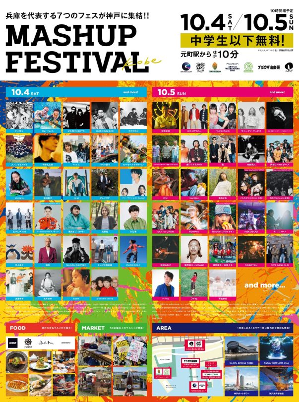 - 2025 年 10 月4日(土),5日(日)の2日間に渡り、 神戸ベイエリア一帯複数会場で初開催される複合フェスティバル『MASHUP FESTIVAL kobe』 7つのフェスティバルに所縁のある多彩なアーティストが 2 日間で 60 組以上集結。