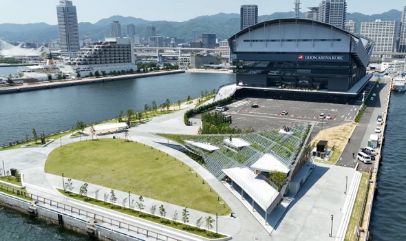 - TOTTEI:パークエリアでは神戸の海と六甲山を同時に感じることができる絶景の「緑の丘」が完成