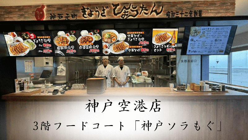 神戸空港店は旅の行き帰りに最適。焼きたて餃子を名物みそだれで。テイクアウトも便利、神戸の味で空の時間を幸せに。搭乗前の腹ごしらえや帰着後にも。空の弁当感覚の持ち帰りもOK