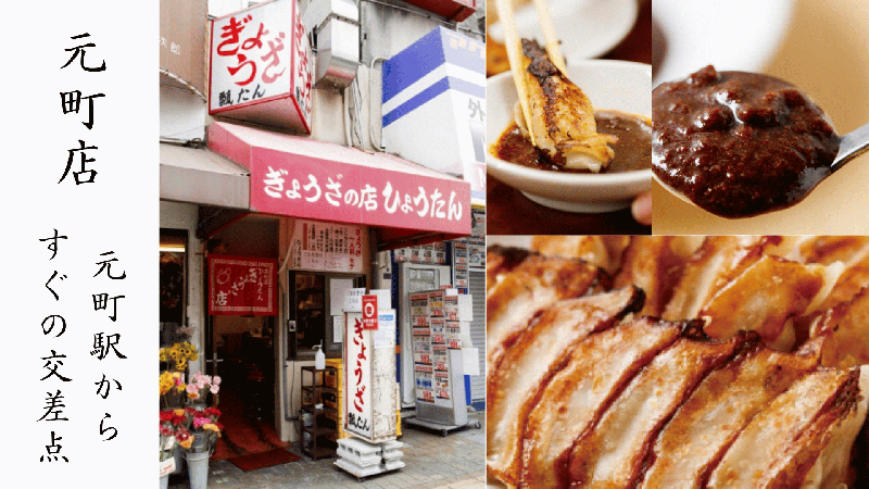 ひょうたん元町店は、旧居留地や南京町散策の途中に寄れる好立地。香ばしく焼いた餃子を名物みそだれで。街歩きの〆にも最適。元町商店街にも近く、昼飲みやテイクアウトにも便利