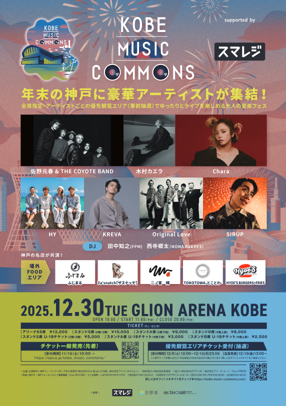 - テーマは“ミドル世代から神戸を元気づける!” これまでの神戸を支えてきた30代以上のミドル世代がまた、これからの神戸の起爆剤となるべく、「音楽を通じてミドル世代が繋がる空間、感情や想いを共有する空間、音楽の力でミドル世代のポテンシャルを高めることができるエネルギッシュな空間(=commons)をこのライブで創り2026年の弾みにしたい」という想いから企画しました。