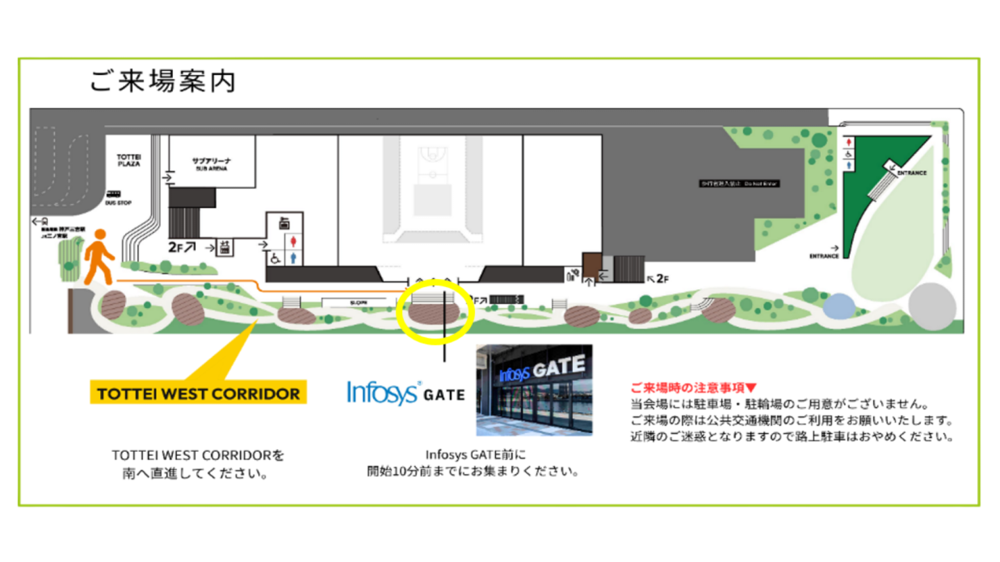 - 12月14日(日)12:30~13:30 <集合場所> アリーナ1階西側 Infosys GATE前広場 ※開始10分前までにお集まりください。 ※開始時間に遅れますとご参加いただけない場合がございます。予めご了承ください。