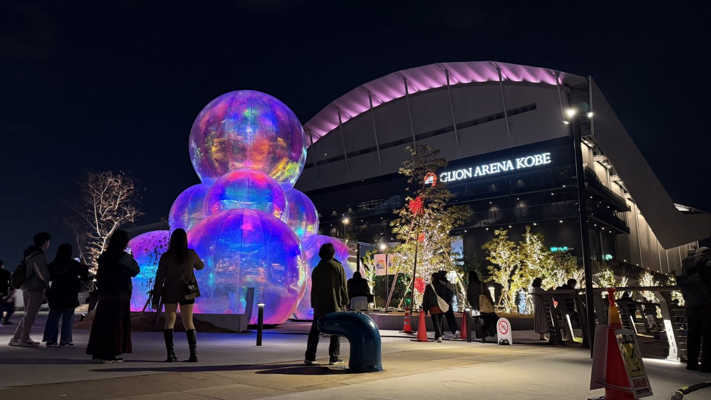 | <開催場所情報> ①マリーナ予定地(ジーライオンアリーナ神戸西側水辺エリア) : Evanescent Droplets by Atelier Sisu 日本最大級ラグジュアリー大型艇スーパーヨットのマリーナ (※1)が来年開業することに先立ち、水域を活用した日本初の水辺のバブルイルミネーションを開催します。 ②アリーナ前(TOTTEIエリア入口付近) : Colossal by Atelier Sisu 全長9.8Mの巨大なバブルイルミネーションが登場します。昼と夜で印象が変わるイマーシブなアート体験をお楽しみいただけます。 |