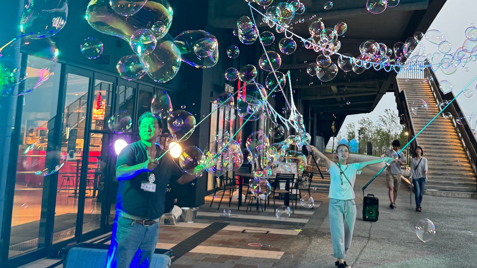 - 『KOBE BUBBLUMI 2026』のバブルアート前でシャボン玉を楽しもう!シャボン玉アーティストが実際に使う機材を使って、大きなシャボン玉や大量のシャボン玉を誰でも簡単に飛ばすことができます。1杯500円で液がなくなるまでシャボン玉は飛ばし放題!夜はナイトバブルショーも開催予定。”きらめくバブルアート×シャボン玉”の特別な体験をお楽しみください! <シャボン玉アーティスト体験> 利用料:500円 / シャボン液1杯 ※繰り返し楽しみいただけます <ナイトバブルショー> 日没後(18:45頃)に実施予定