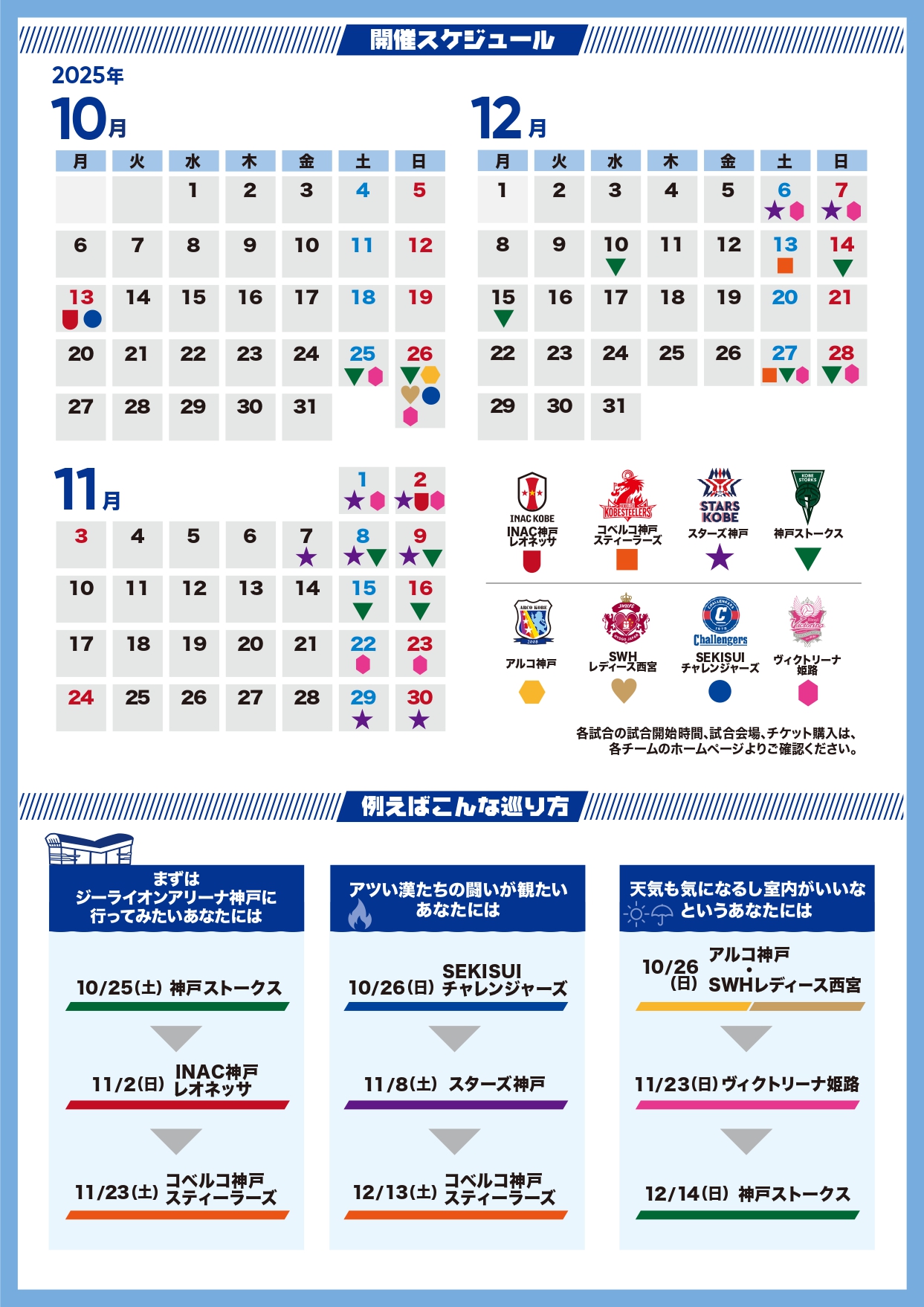 ※チーム毎に1スタンプ付与(アルコ神戸・SWHレディース西宮の共同開催を除く)