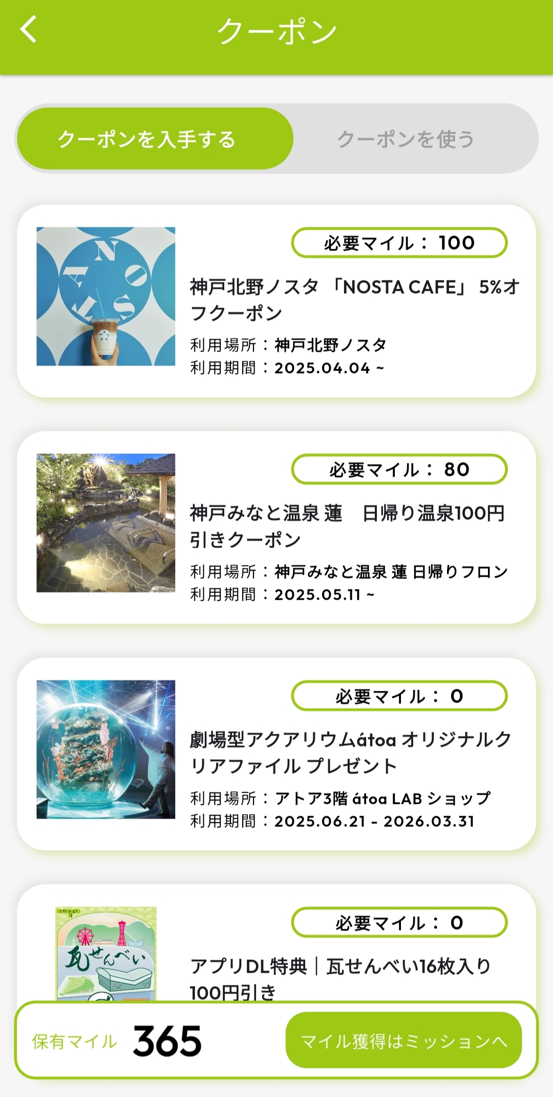 保有しているマイル数やクーポン引き換えに必要なマイル数がわかりやすくなるよう、デザインをアップデートしました。