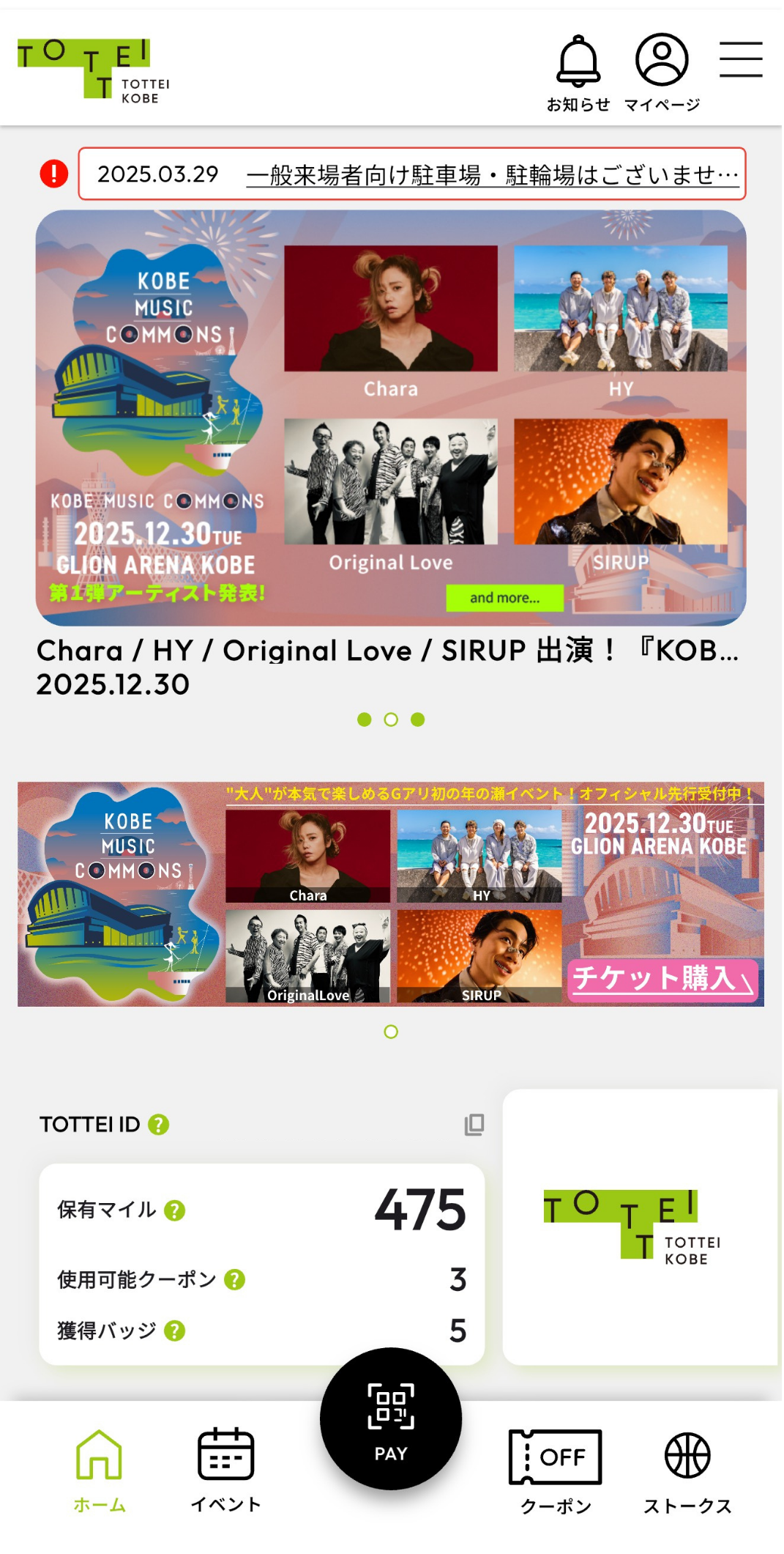 いつもTOTTEI KOBE公式アプリをご利用いただき、誠にありがとうございます。