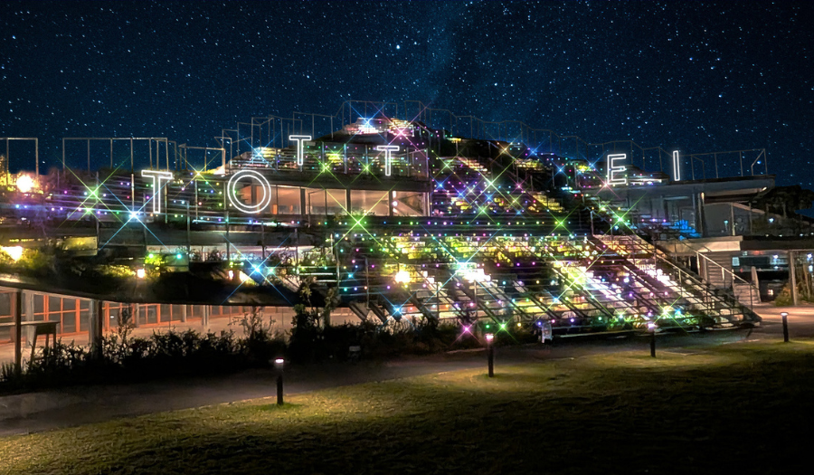 なかでも丘状の建築物「緑の丘」は、クリスマスカラーにきらめく『登れる新感覚のイルミネーション』として、神戸港の夜景とともに特別なひとときをお過ごしいただけます。TOTTEI初のクリスマスイルミネーションです。