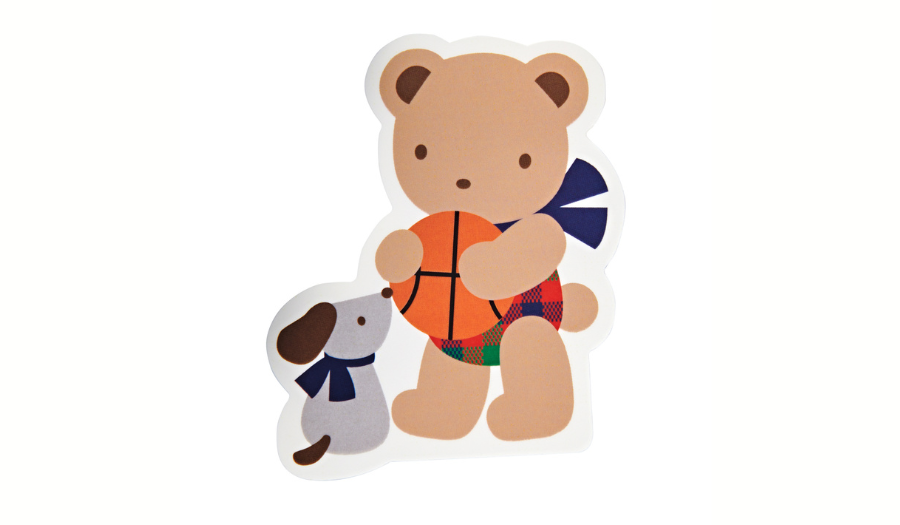 バスケットボールを持ったクマちゃんがモチーフのステッカー。スマートフォンケースの内側に挟んで使えるサイズ感です。