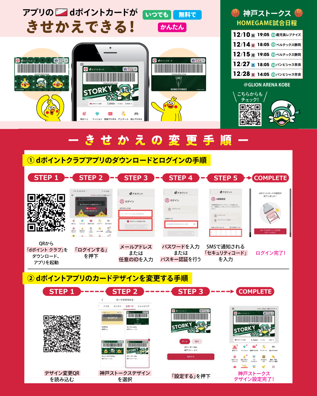 神戸ストークスデザインにきせかえをして貯めたdポイントの5%が“応援金”としてクラブに還元されます。(※お客さまのご負担はありません)この機会にぜひ、神戸ストークスデザインにきせかえして、TOTTEI / GLION ARENA KOBEのグルメ店舗でd払いをご利用ください。