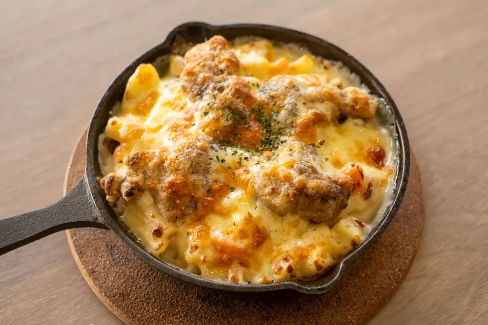 イタリアンレストラン『WABISABI VERDE』のあったかグルメに「牡蠣グラタン」が登場。イルミネーションのお供に、テイクアウト可能なカベルネ・ソーヴィニヨン「ホットワイン」や「トルティーヤ」なども新メニューでご提供します。