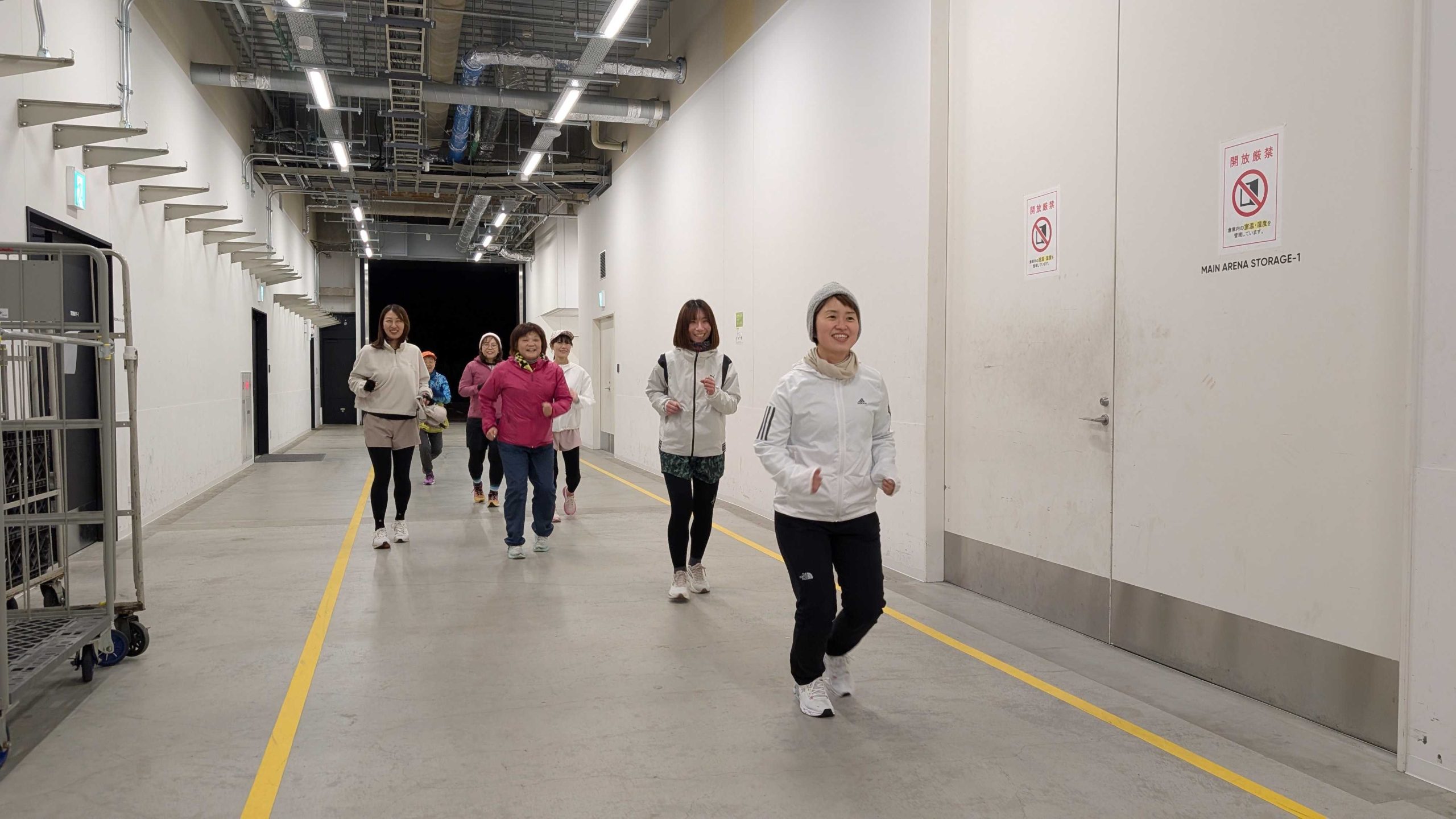 普段は通れないルート:駐車場から搬入口を通過して、チームメイトが待つアリーナ内へ