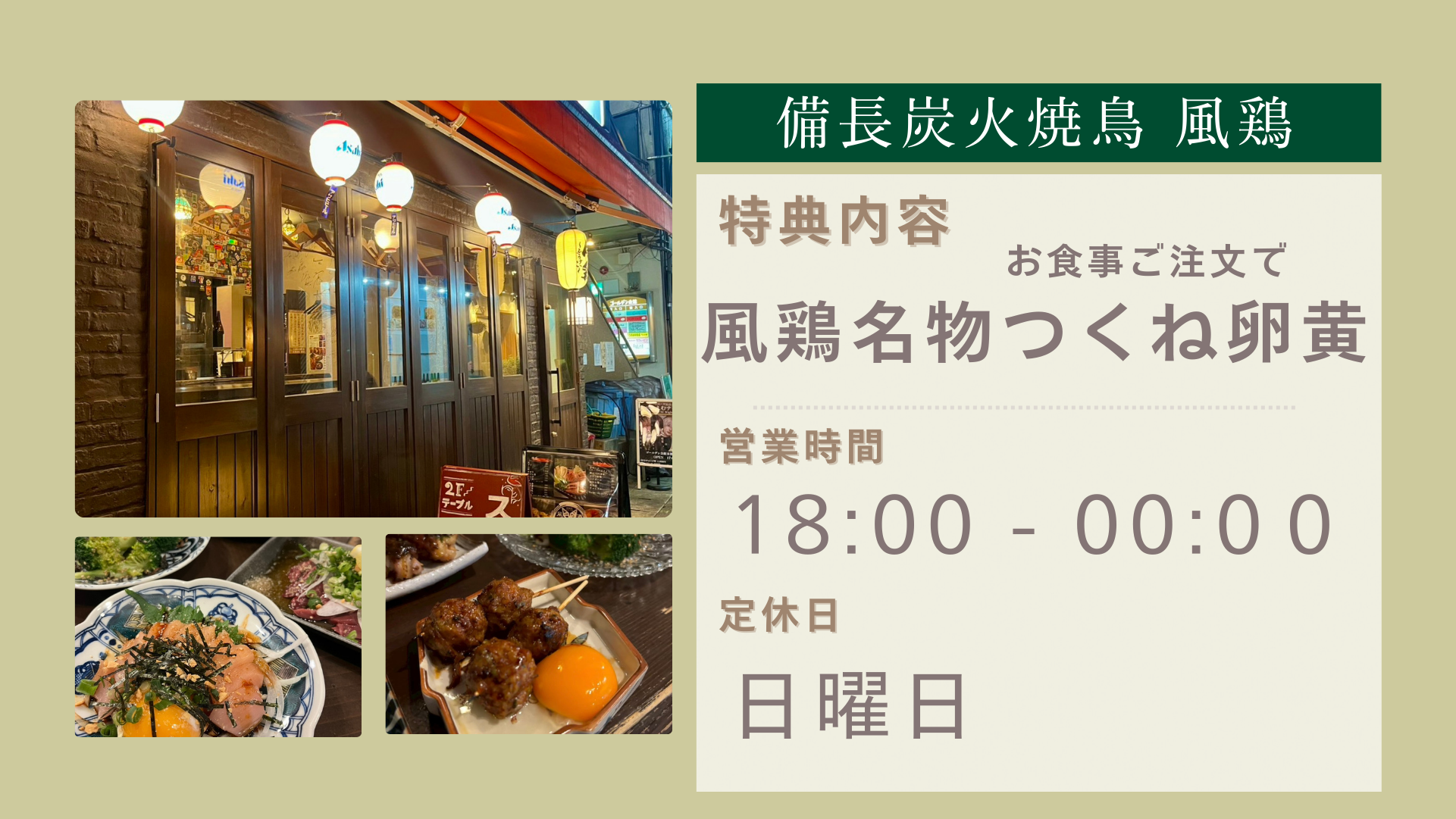 ①備長炭火焼鳥 風鶏(Googleマップ)
