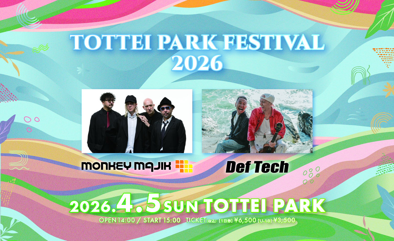 4月5日(日)Def Tech×MONKEY MAJIK出演 TOTTEI野外音楽フェス