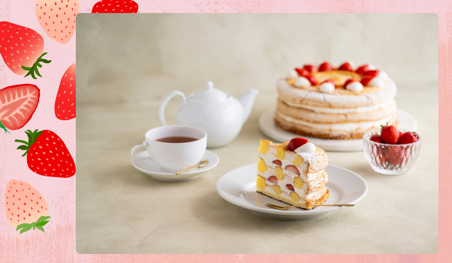 メレンゲと卵黄生地の食感の違いが楽しいカーディナル生地で生クリームといちごをサンド。コクのある生クリームとフレッシュないちごのバランス、口どけの良い生地であっさりと召し上がれる春限定のトルテです。