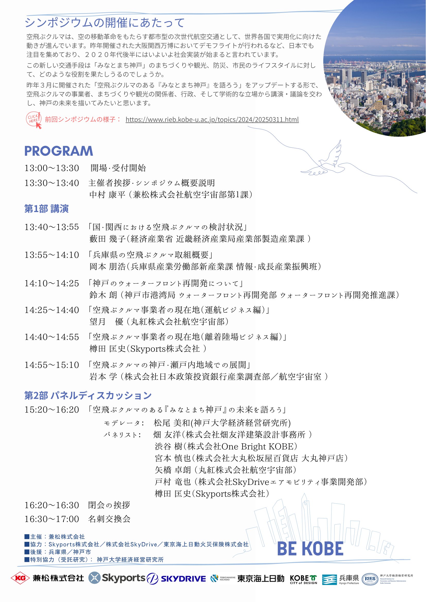 参加対象:「空飛ぶクルマ×みなとまち神戸」のテーマに関心のある事業者、行政関係者、学識関係者、住民の皆さま