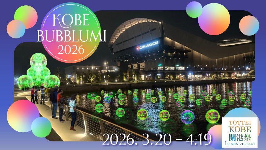 開業記念日の4月4日(土)はTOTTEI沖でGREEN花火もあがるほか、アジア初上陸で水辺がカラフルに彩られるイルミネーション「KOBE BUBBLUMI 2026」もGREENにライトアップします。TOTTEI周辺のまちなかがALL GREENで染まる、幻想的な夜のひとときをお過ごしください。