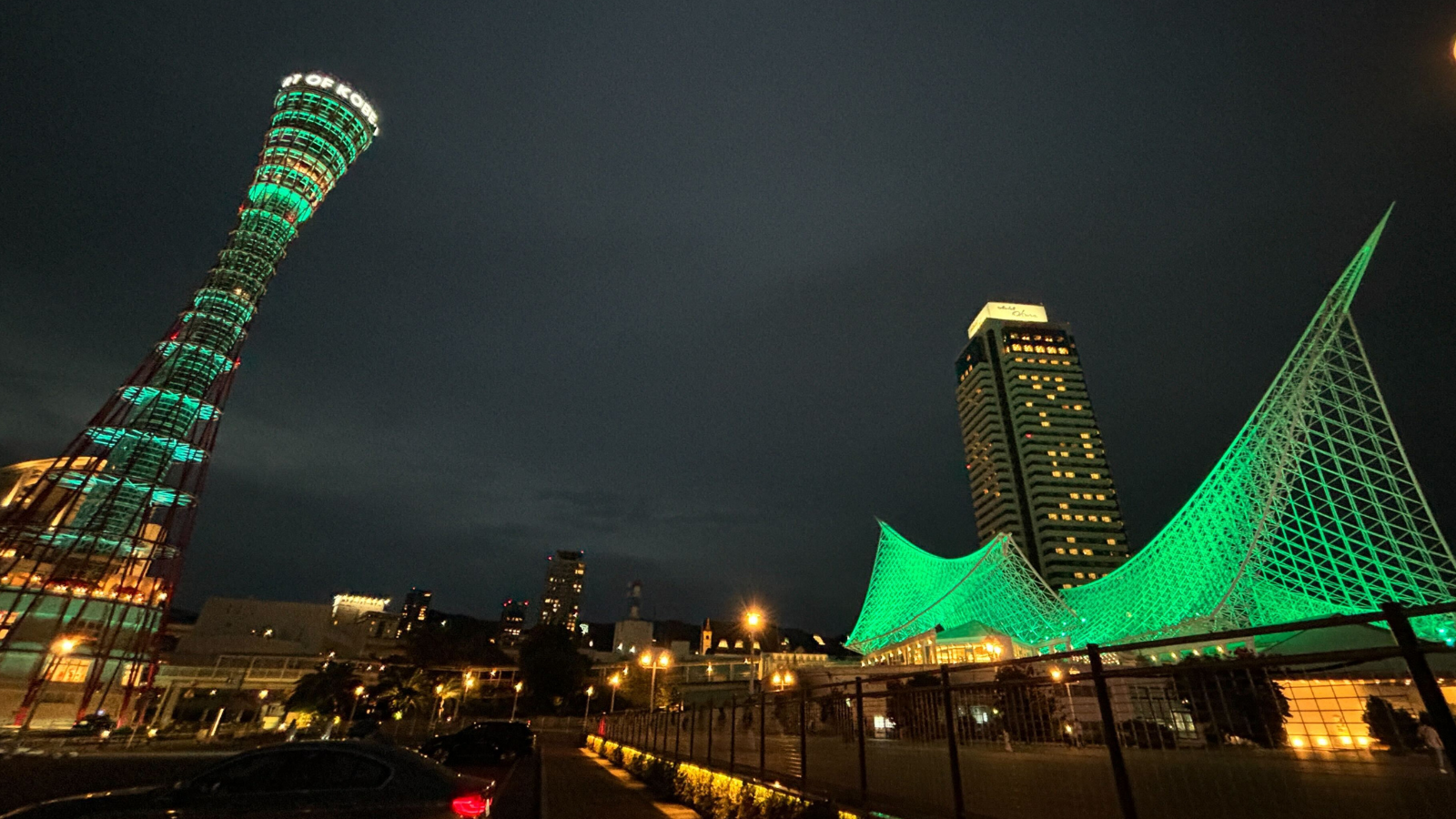 ③ホテルオークラ神戸は初のGREENライトアップ!神戸ポートタワー、神戸海洋博物館神戸市立博物館もGLION ARENA KOBEと共にGREENライトアップでお祝い!